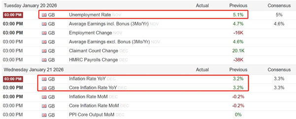 周二,英国11月 ILO失业率将公布,机构预期5%,略低于前值5.1%,但变化非常温和。周三,英国12月核心CPI年率公布,机构预期3.2%,与前值持平。