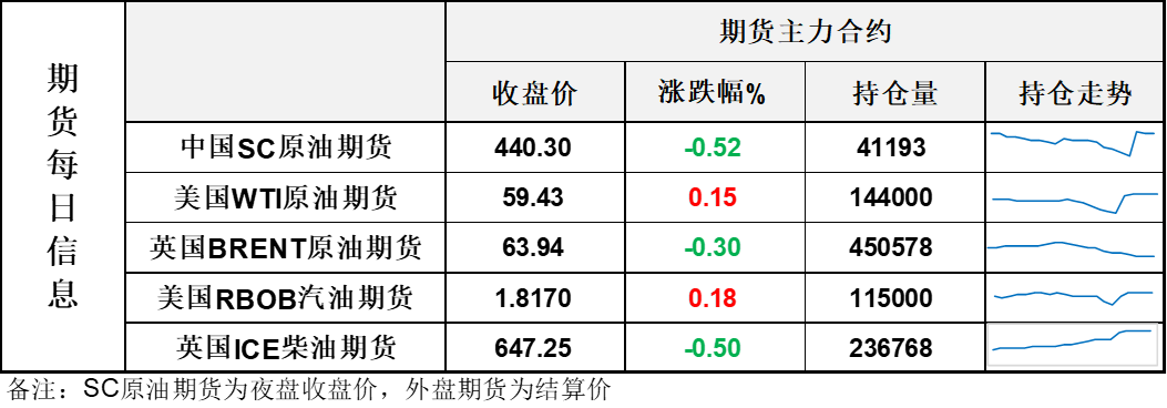 【1】WTI主力原油期货因马丁路德金纪念日提前休市收涨0.09美元,涨幅0.15%,报59.43美元/桶;布伦特主力原油期货收跌0.19美元,跌幅0.3%,报63.94美元/桶;INE原油期货收跌0.52%,报440.3元。