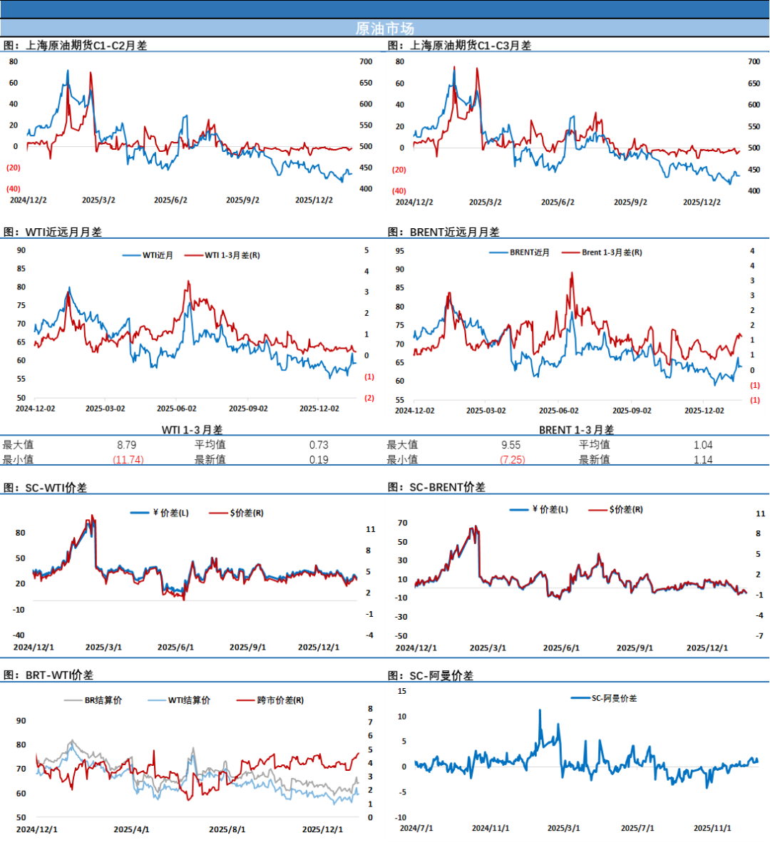 周一原油市场因美国马丁路德金纪念日提前休市,成交清淡。油价短线进入了多空相持阶段,最近二个交易日波动明显收窄。地缘层面的不确定性让市场维持观望态势,一方面美国暂缓对伊军事行动选项,另一方面又持续向中东地区调集军事力量,这让原油市场只能是部分回吐地缘溢价,同时投资者仍在密切关注伊朗局势进展。进入1月之后原油市场的注意力就转移到了地缘因素,供应过剩压力退居其次位置,另外美国对其反对收购格陵兰岛的欧洲盟友拟加征更多关税,也引发了市场对经济层面俄担忧,面对复杂的局面,投资者不得不耐心观察,等待扰动下的原油市场局势明朗。