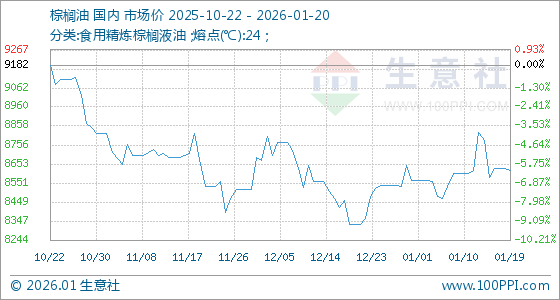 1月20日生意社棕榈油基准价为8620.00元/吨