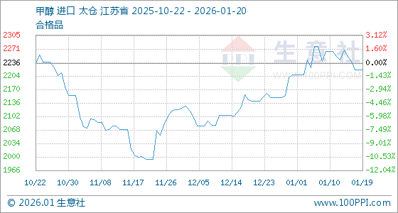 1月20日,生意社甲醇基准价为2218.33元/吨,与本月初(2207.50元/吨)相比,上涨了0.49%。