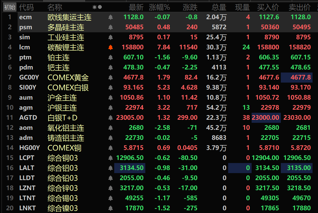 金属普跌碳酸锂涨近8%氧化铝、伦镍、双焦跌幅居前纽银再刷新高【SMM午评】