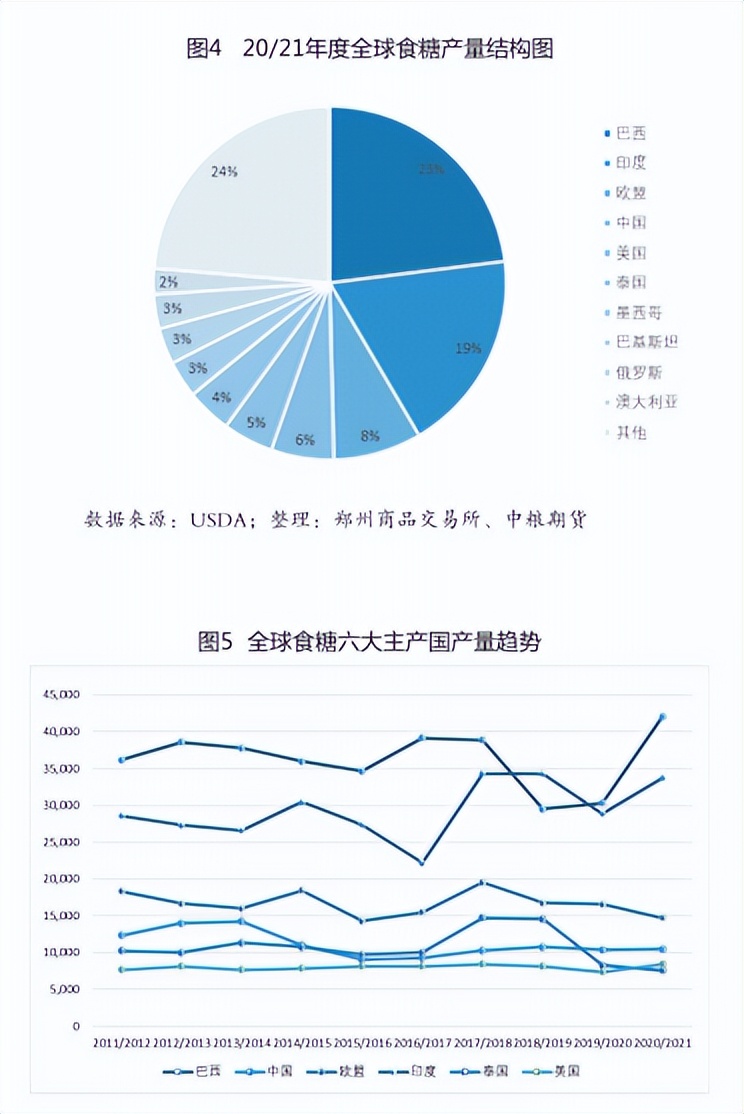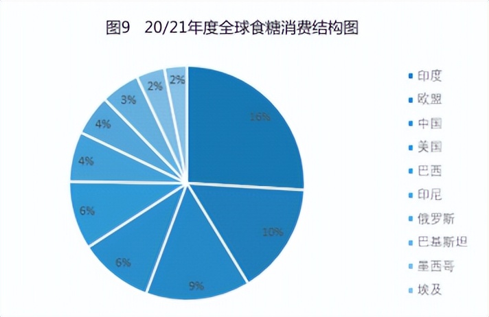 20/21年度,我国是全球第四大食糖生产国,第三大食糖消费国,第二大食糖进口国(把欧盟作为整体统计)。