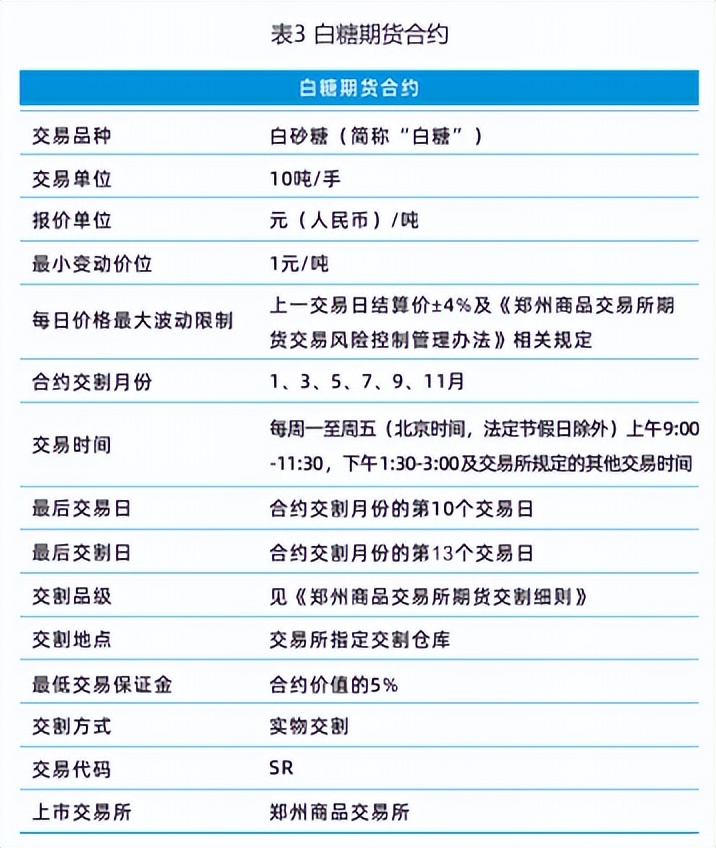 期货交易实行保证金制度。白糖期货合约的最低交易保证金标准为期货合约价值的5%。期货合约的交易保证金标准按照该期货合约上市交易时间段“ 自挂牌至交割月前一个月第15个日历日期间的交易日”、“交割月前一个月 第16个日历日至交割月前一个月最后一个日历日期间的交易日”和“交割月份”分期间依次管理,对应的保证金标准分别为5%、10%和20%。