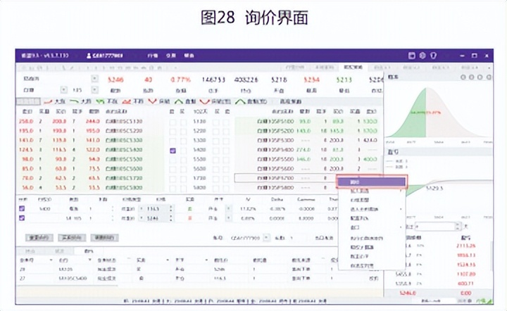 T型报价行情界面第一栏横向为交易指标名称, 中间纵向为行权价格序列,形状为T字,故称为T型报价。T型报价包含某一品种、某-到期月份、不同行权价格的所有看跌和看涨期权的行情信息,还包含买卖申报量、成交量、持仓量及波动率、风险指标等。