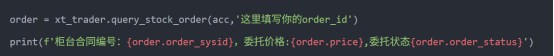 当然也支持根据订单编号(同步报单接口返回的编号)来查询某个委托的状态: