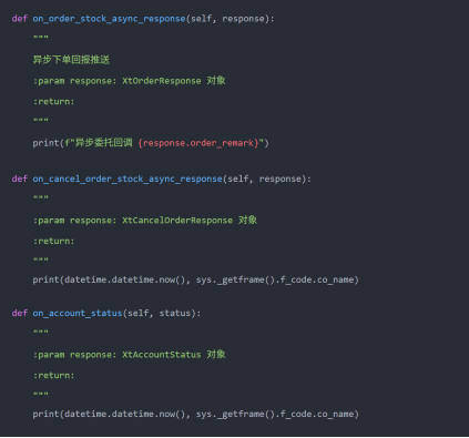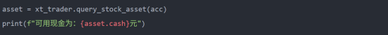 通过上面的方法init_account可以得到XtQuantTrader和StockAccount2个对象,后期我们获取数据和交易会用到。