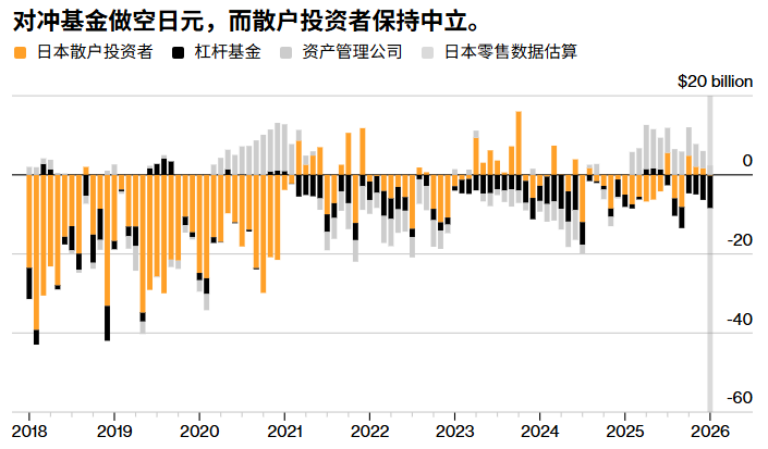 但如果他过于鸽派,日元空头就会伺机而动。不过,市场数据显示,投资者的立场相对分散,这可能会限制市场波动的幅度。根据美国商品期货交易委员会的数据,截至1月13日,杠杆基金日元净空头头寸规模为81亿美元,而资产管理公司净做多日元24亿美元。