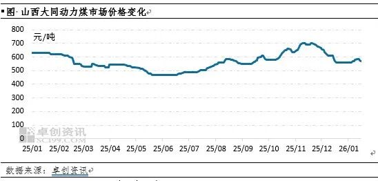 综上所述,进入1月下旬后,国内动力煤市场供需格局整体趋于紧平衡,当前煤价回调趋势有望结束,价格或止跌趋稳运行为主,预计山西大同Q5500大卡动力煤价格有望在555-580元/吨区间内运行。