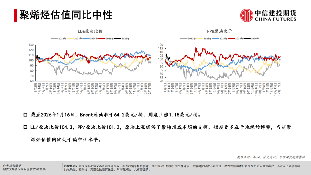 观点:短期情绪支撑,基本面前期超卖下短期去库压力不大,整体宽幅震荡运行,关注地缘进展。L主力参考6500-7000元/吨,PP主力参考6300-6700元/吨。