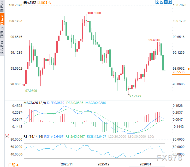 周三亚市时段,美元指数于98.55附近窄幅震荡,此前两个交易日连续显著下行,跌幅约1%,反应市场对美元的信任根基动摇。