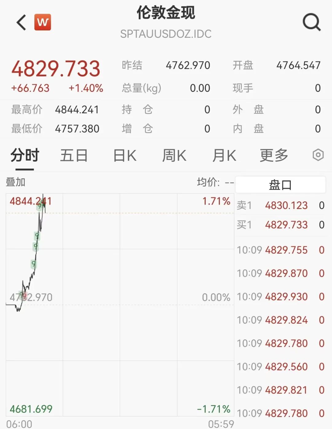 A股指数全线飘红,芯片股爆发,金银股大涨,黄金首次站上4840美元