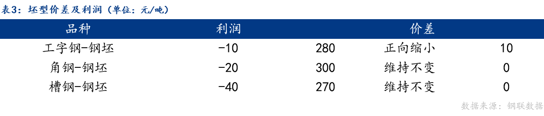 从品种价差来看,今日唐山钢坯与工字钢价差正向缩小,与槽钢、角钢价差维持不变。