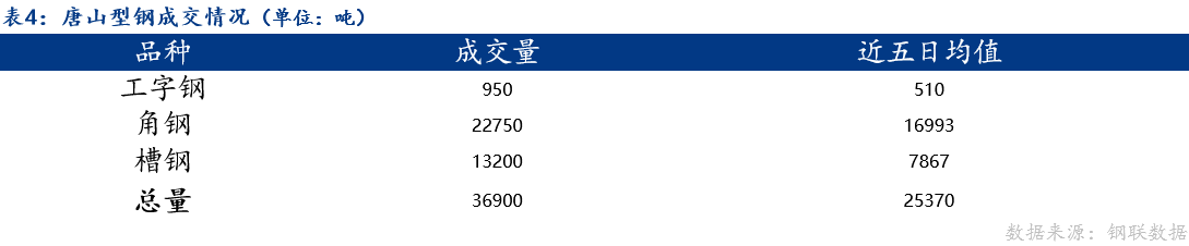 2、成交量为20家型钢厂当日成交,其中包括工字钢6家、角钢7家、槽钢7家。