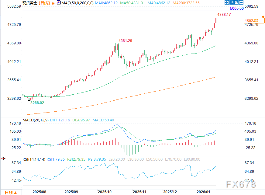 在黄金的长期牛市中,5000美元并非终点,而是一个新的时代的起点。随着整数关口的突破和市场动能的释放,黄金正在重新定义全球财富的价值尺度。这一轮市场的崛起,不仅仅是避险资金的涌入,更可能是全球货币秩序重新洗牌的前奏。