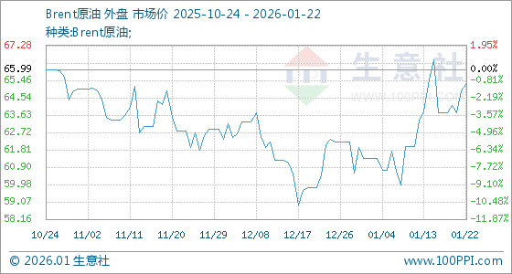 1月22日生意社Brent原油基准价为64.92美元/桶