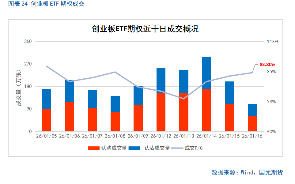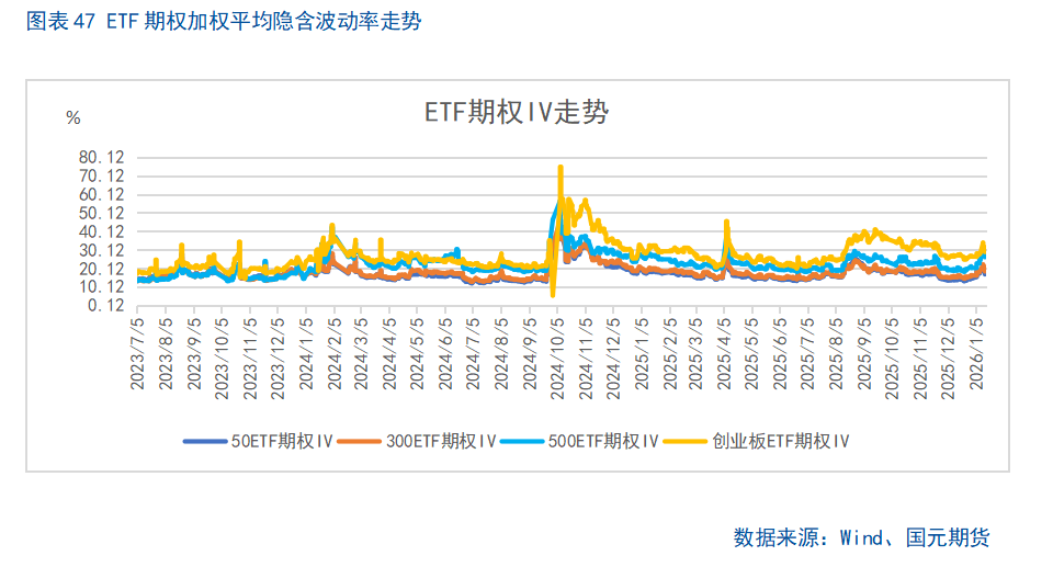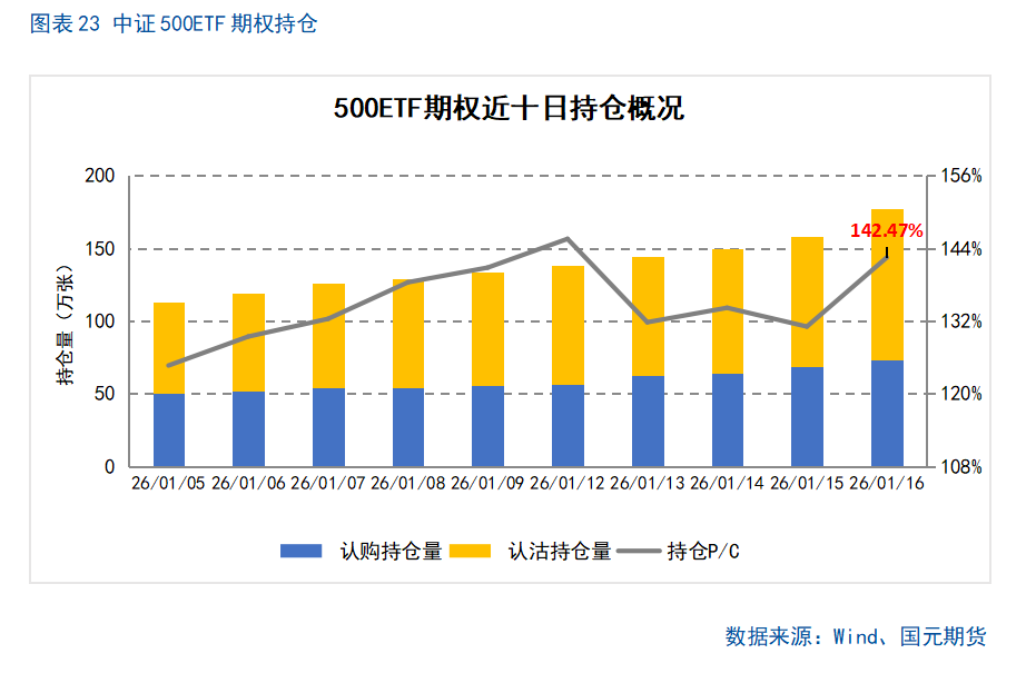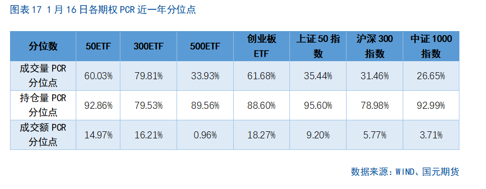 期权方面,上周期权成交量处在高位。期权持仓PCR整体处在高位,期权卖方当前不看跌,市场情绪偏积极。