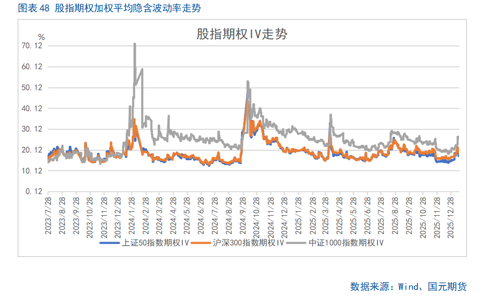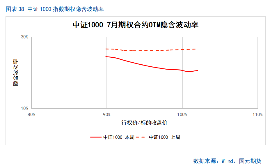 股指上行趋势有所放缓,期权加权平均隐含波动率上周略有下降。当前各标的期权加权平均隐含波动率在16%-29%附近,整体处在中等偏高水平。近期股指波动有所放大,市场对标的波动预期有所上升。