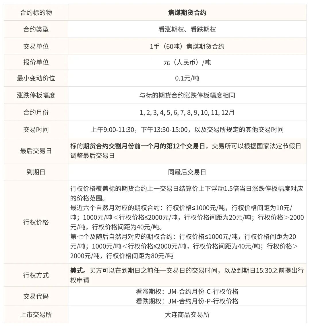 另外,在《关于焦煤期权上市交易有关事项的通知》中公布:
