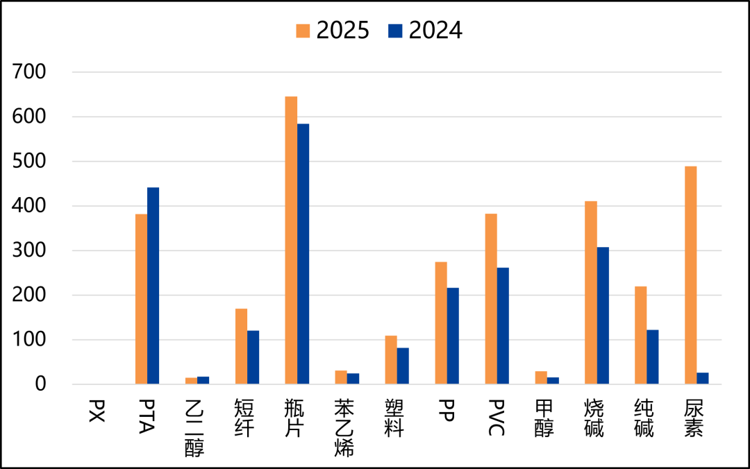 2026年我国GDP增速预计保持在5%左右,内需可能不会出现明显变化,但季节性行情依然可期。参考历史行情,PVC受益于建材需求改善,尿素、苯乙烯和聚烯烃受益于旺季需求改善。