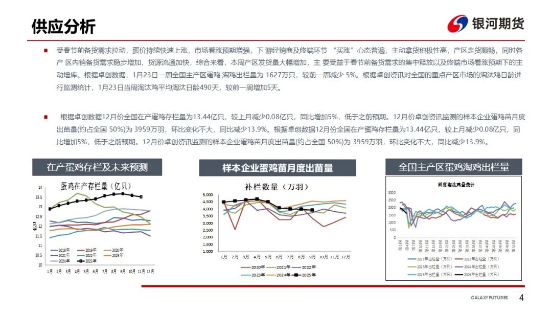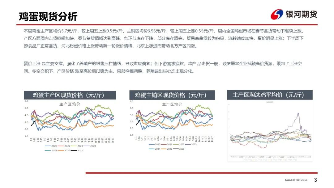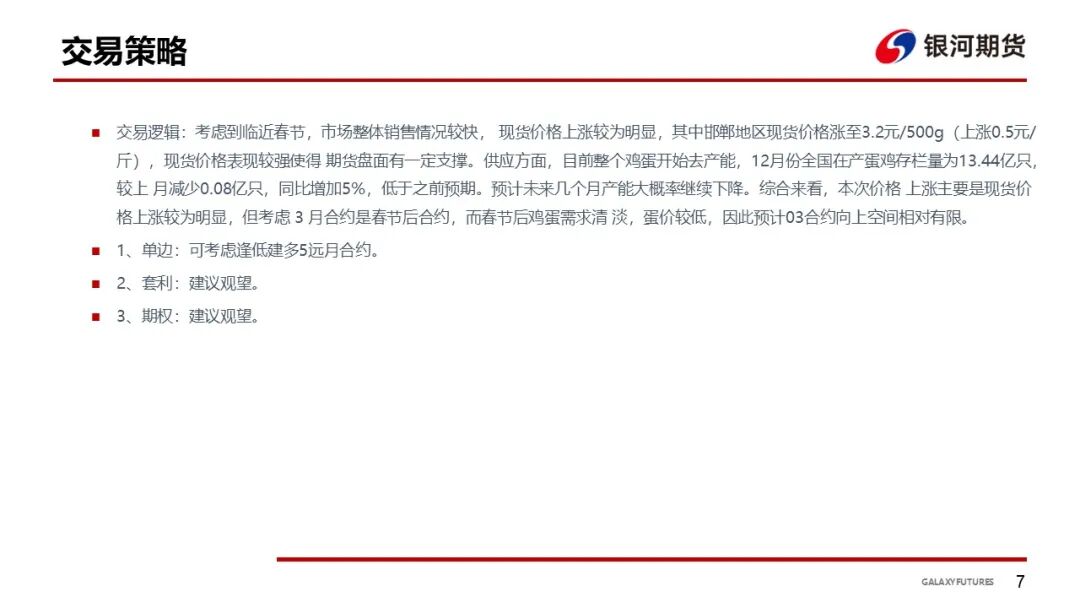 期现货跟踪:博亚和讯数据显示,全国主产区鸡蛋价格主稳有涨,销区到货量略增,尤其南方走货一般,预计近期鸡蛋价格或逐步止涨企稳,涨幅有限。鸡蛋期价分化运行,以收盘价计, 1月合约下跌57元,5月合约下跌3元,9月合约上涨6元。