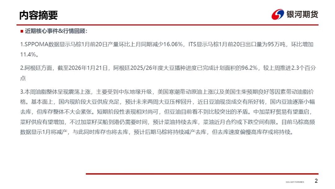 近期核心事件&行情回顾:1.马来库存或达200万吨以上;2.豆油基差持续偏强;3.国内油脂库存继续偏紧。