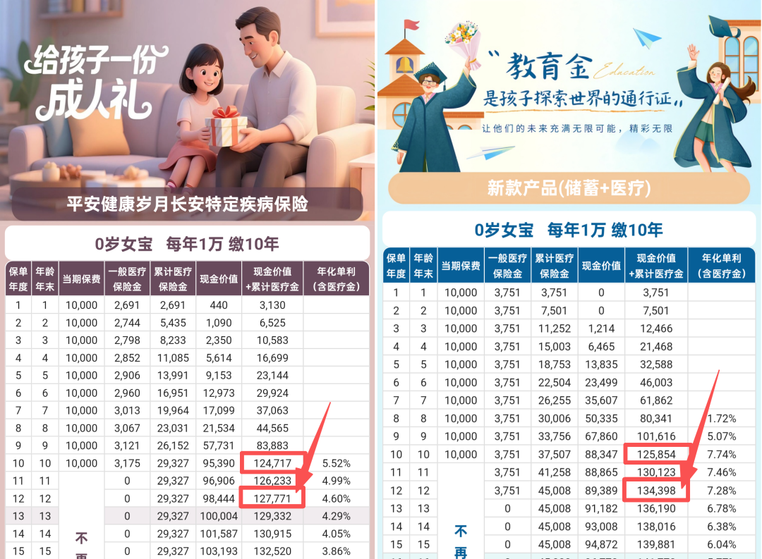 - 注重医疗额度:给孩子买,想覆盖更长周期的疫苗、牙齿矫正费用,新品的12年期更从容,多拿1万6真的太香了。