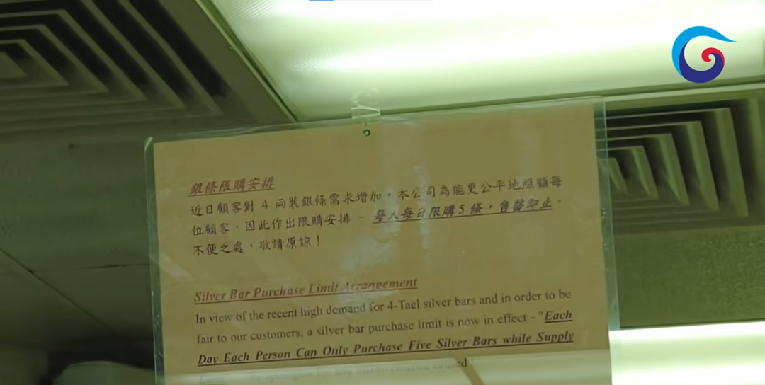 “大约一个半月前,我们还有三千条白银无人问津,但突然之间,购买者蜂拥而至,导致我们生产的白银供不应求。”该金行的负责人对21世纪经济报道记者表示。面对激增的市场需求,该金行目前已推出“限购令”,规定每位顾客每日限购5条白银,每条重量约为150克。