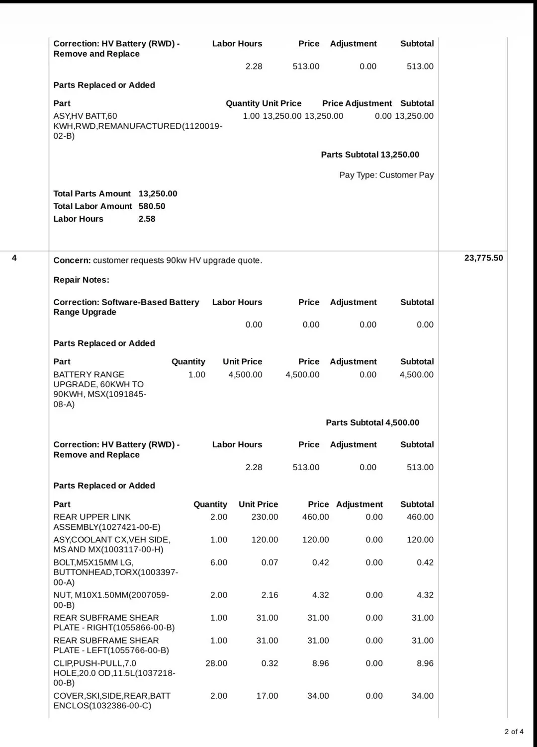 如果选择升级到90kWh电池,成本更是直线飙升。电池本体售价18000美元(现汇率约合12.6万元人民币),车主还需要额外支付4500美元(现汇率约合31409元人民币)才能解锁全部容量,再加上安装费用及必要的更换零件,总价高达23262美元(现汇率约合16.2万元人民币)。