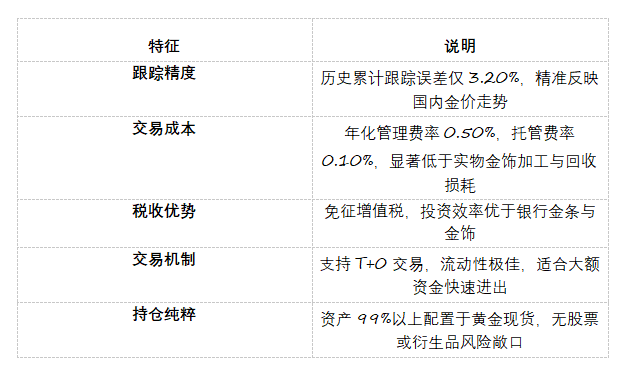 产品优势:低成本、高效率、零税负的黄金配置首选