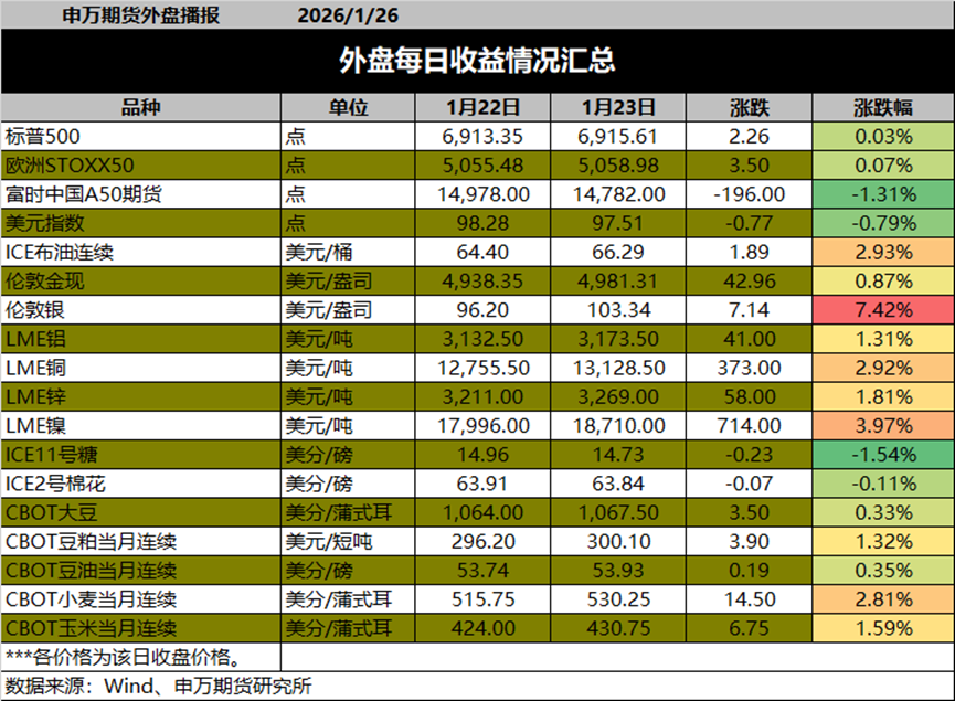 美联储继任主席牵动市场:申万期货早间评论-20260126