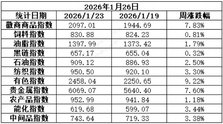 【指数周报】徽商商品指数周报(2026年1月26日)