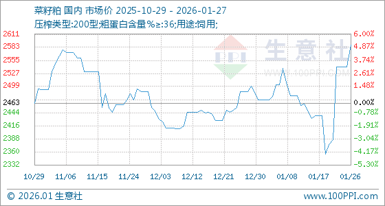 1月27日生意社菜籽粕基准价为2588.00元/吨