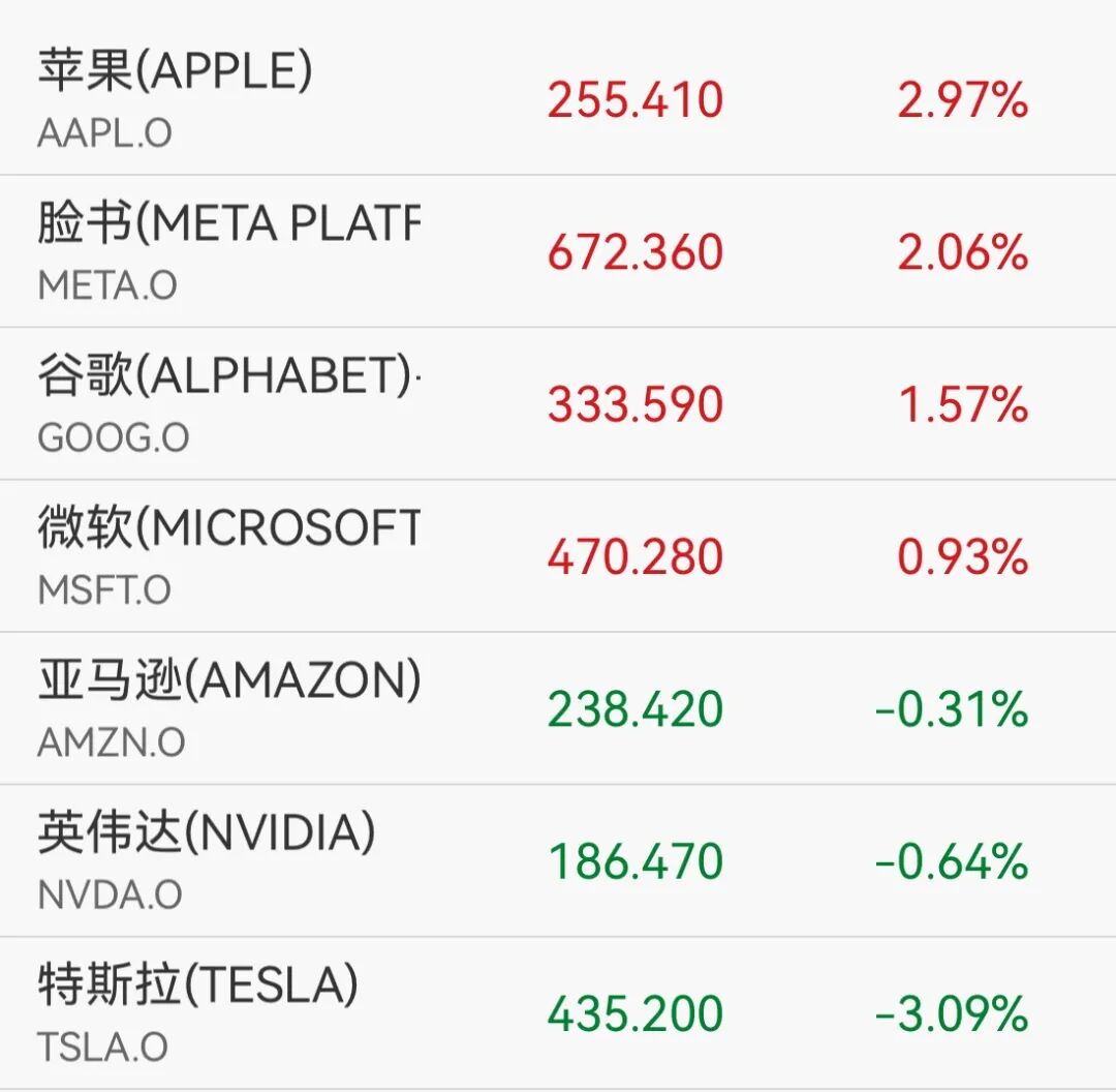 科技巨头方面,苹果、脸书涨逾2%,谷歌涨逾1%,微软涨近1%;亚马逊、英伟达收跌,特斯拉跌逾3%。