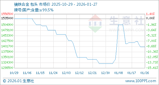 1月27日生意社镝铁合金基准价为1400000.00元/吨