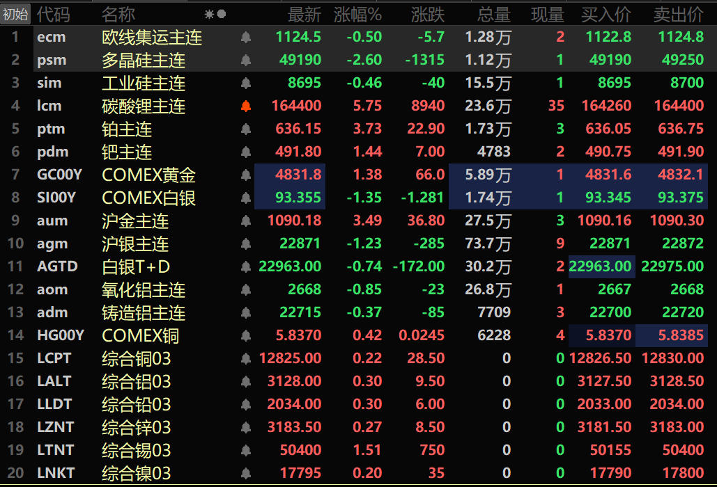 金属外强内弱碳酸锂涨超5%多晶硅焦煤跌逾2%纽金升破4800【SMM午评】