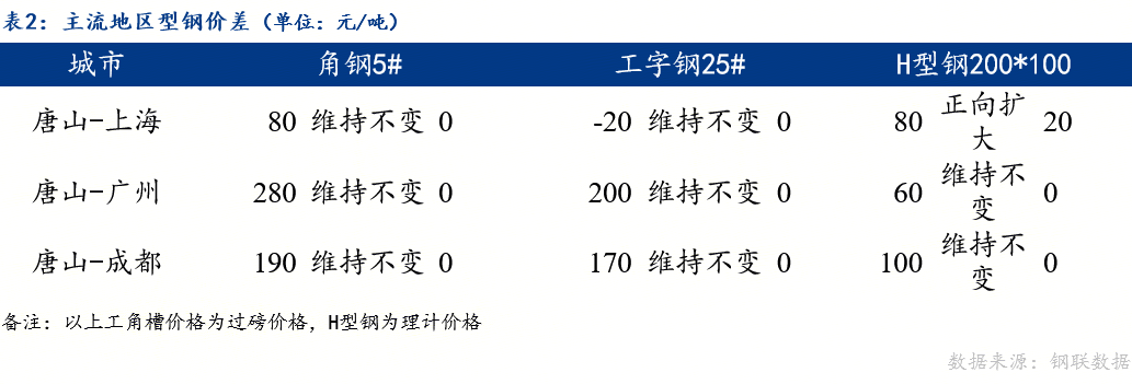 今日唐山与上海H型钢价格正向扩大。