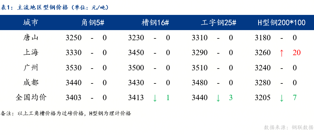 今日型钢价格稳中趋强运行,上海H型钢价格上涨20元/吨。