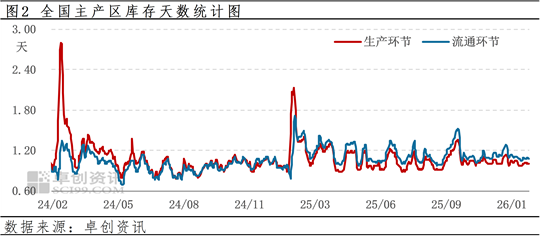 库存:今日全国生产环节平均库存1.01天左右,流通环节库存1.07天左右。