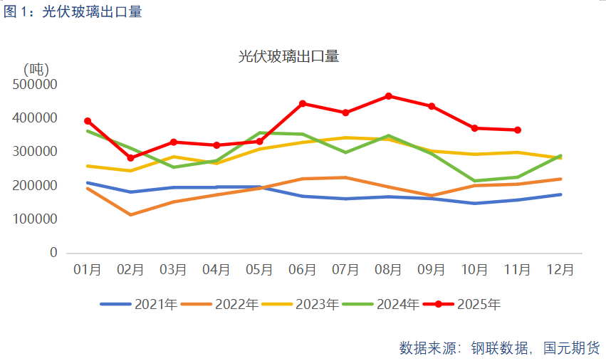 清单中“玻璃”一词高频出现,但对浮法玻璃而言,涉及日用玻璃、钢化玻璃等加工玻璃,对浮法玻璃整体供需影响有限。全球光伏市场需求增长虽整体平缓,但新兴市场表现出较快增长势头。通常一季度尤其是春节假期前后是国内外光伏装机淡季,但在退税取消的政策刺激下,一季度光伏组件有望再现“抢出口”行情,呈现“淡季不淡”的局面。光伏玻璃作为组件成本中占比超一成的主要材料,既会随组件间接出口需求提升,其直接出口数量也有望回升。据钢联数据,2025年1-11月光伏玻璃累计出口量达415.25万吨,同比上涨26.16%,显示出口市场的潜力。