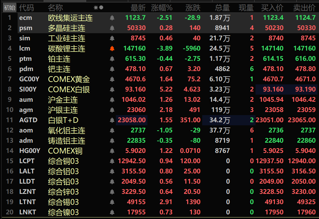 美元走弱金属外强内弱沪锡跌超5%碳酸锂、沪铅领跌金银刷新高【SMM午评】