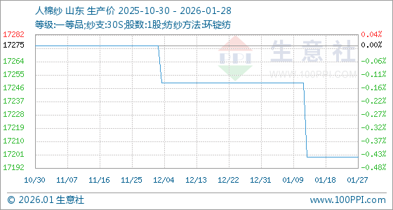 1月28日生意社人棉纱基准价为17200.00元/吨
