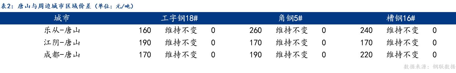 从区域价差来看,今日唐山与乐从、江阴、成都工字钢、角钢、槽钢价差维持不变;