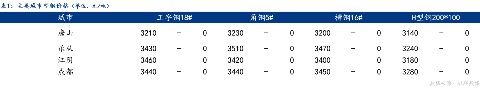 今日型钢价格持稳,唐山、乐从、江阴、成都工字钢、角钢、槽钢、H型钢价格较上一交易日均持稳。