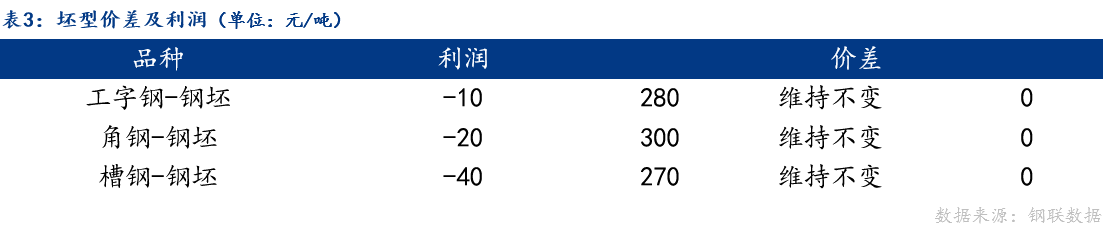 从品种价差来看,今日唐山钢坯与工字钢、槽钢、角钢价差维持不变。