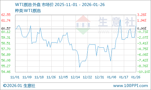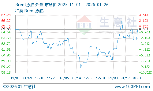 1月23日,国际原油期货涨幅明显,两大核心指标原油周度涨幅均超2.5%。美国WTI原油3月合约上涨1.71美元,涨幅2.9%,结算价报61.07美元/桶,创逾一周高位;布伦特4月原油期货合约(交投最活跃)上涨1.73美元,结算价报65.07美元/桶。地缘政治紧张升级及全球多地原油供应扰动,成为推动油价上行的核心驱动力;尽管上周初油价曾因政策预期波动出现短期回调,但上周五在多重利好因素叠加下,油价强势反弹并收复前期失地。