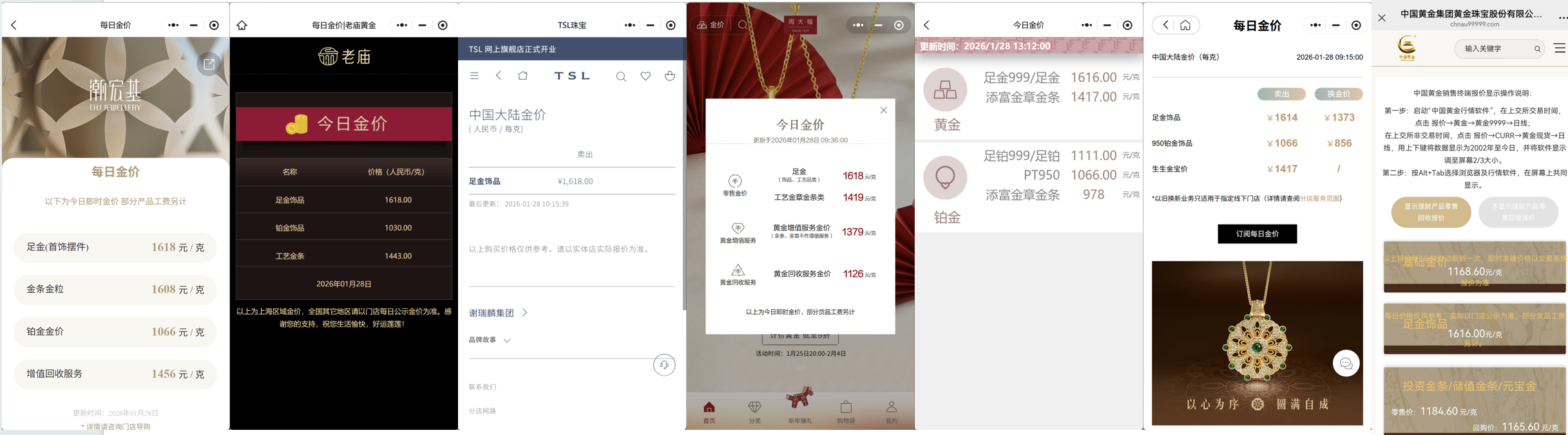 具体而言,当日,周生生足金饰品境内价格为1614元/克,单克较前一日上涨37元;中国黄金足金饰品价格为1616元/克,单克较前一日上涨30元;六福珠宝足金999/足金境内价格为1616元/克,单克较前一日上涨33元;周大福足金(饰品、工艺品类)、谢瑞麟足金饰品、潮宏基足金(首饰摆件)境内价格为1618元/克,单克较前一日上涨33元;老庙黄金上海区域价格为1618元/克,单克较前一日上涨43元。
