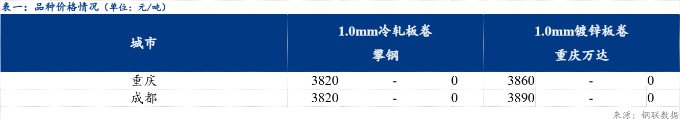 综合来看,短期需求表现放缓,价格存在继续走弱空间,但在钢厂结算成本支撑下,调整幅度较小。 预计明日西南地区冷轧及镀锌板卷价格窄幅调整运行。