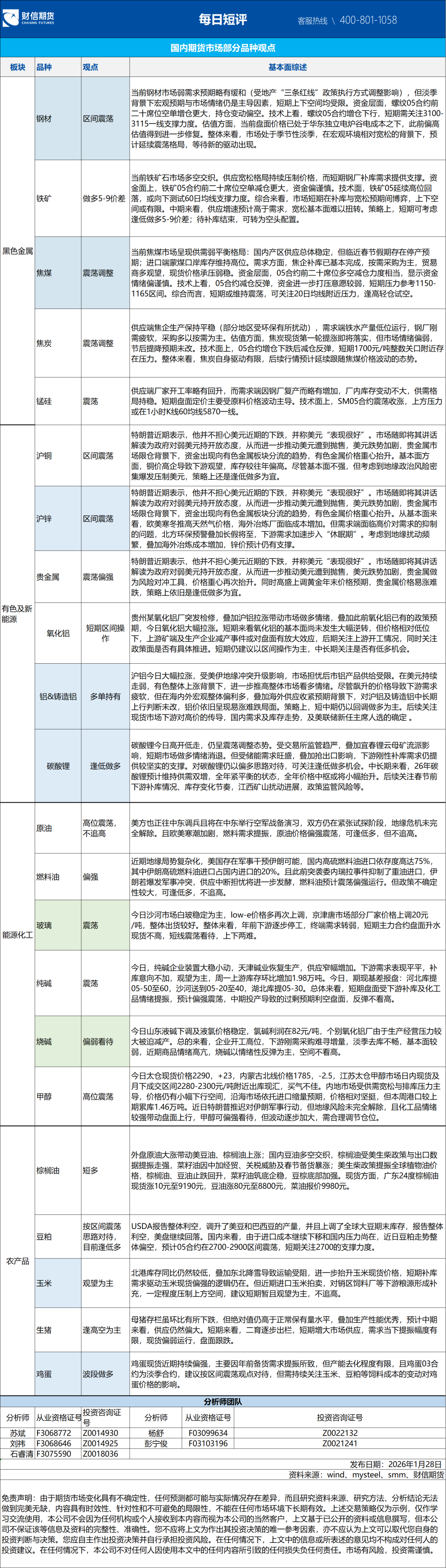 更多品种基本面与产业信息,请关注每日短评。