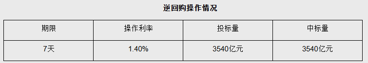 央行开展3540亿元7天期逆回购操作,净投放1438亿元